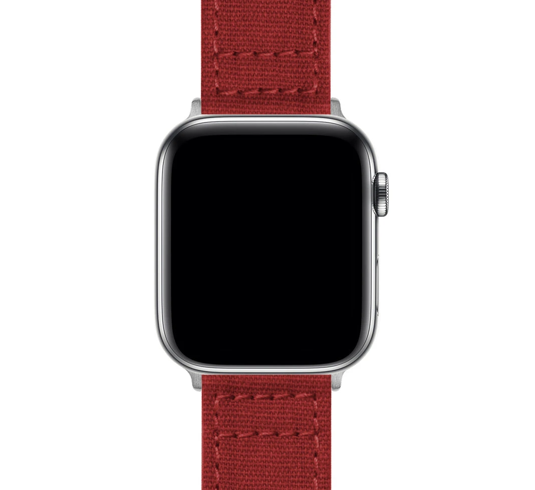 This Crimson Red Canvas Apple Watch band is meticulously crafted from highly durable cotton canvas and embroidered for style and strength. Machine washable and extremely dependable, this red Apple Watch band will add character to any Apple Watch. Pair with our Silicone or Leather Apple Watch Bands to take full advantage of the opportunity to ‘Switch it Up.’