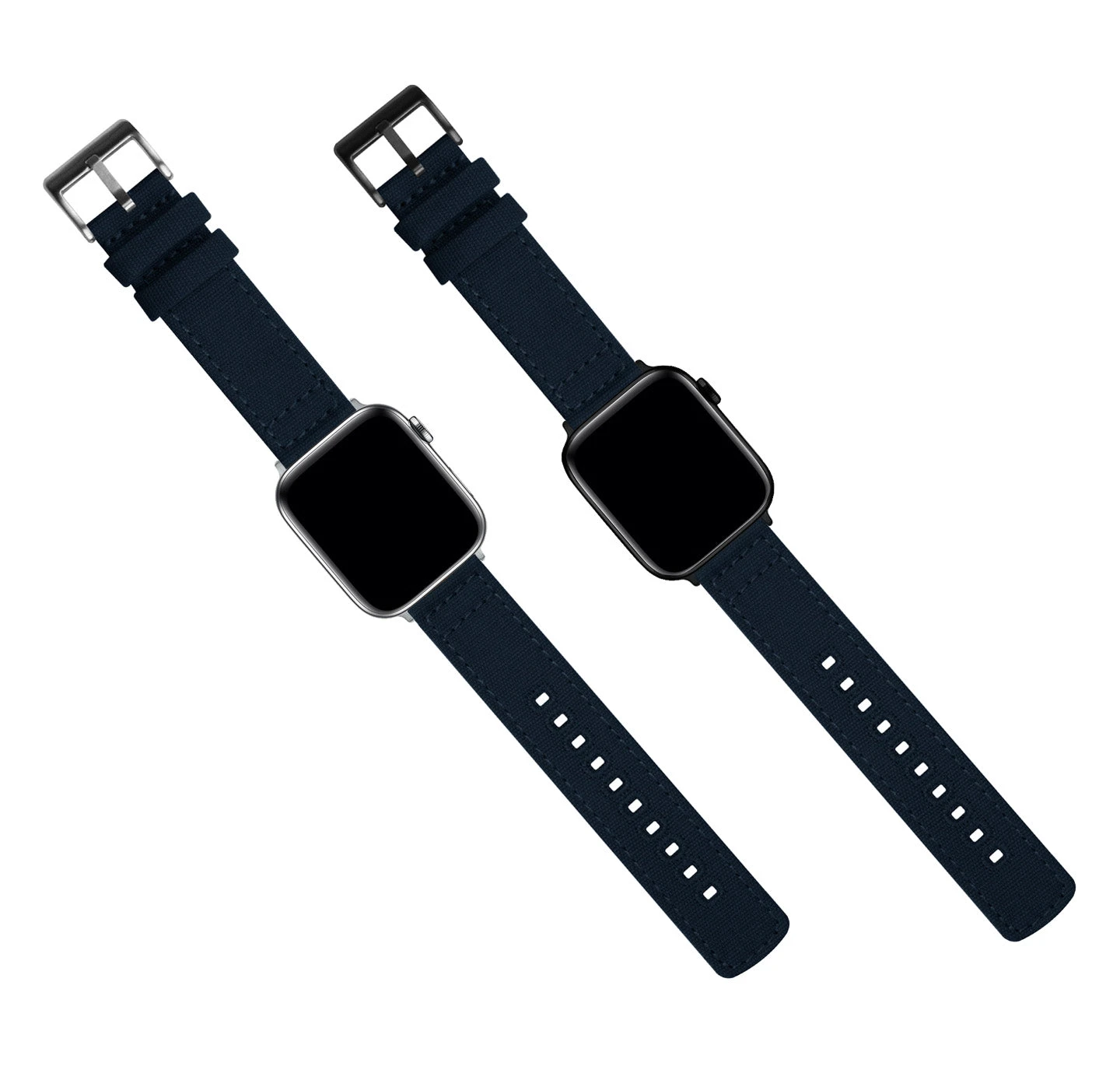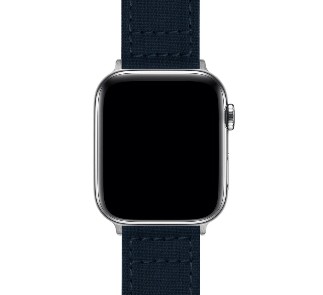 Our canvas bands are meticulously crafted from highly durable cotton canvas and embroidered for style and strength. Machine washable and extremely dependable, these navy blue canvas straps will add character to any Apple Watch. Pair with our Silicone or Leather Apple Watch Bands to take full advantage of the opportunity to ‘Switch it Up.’
