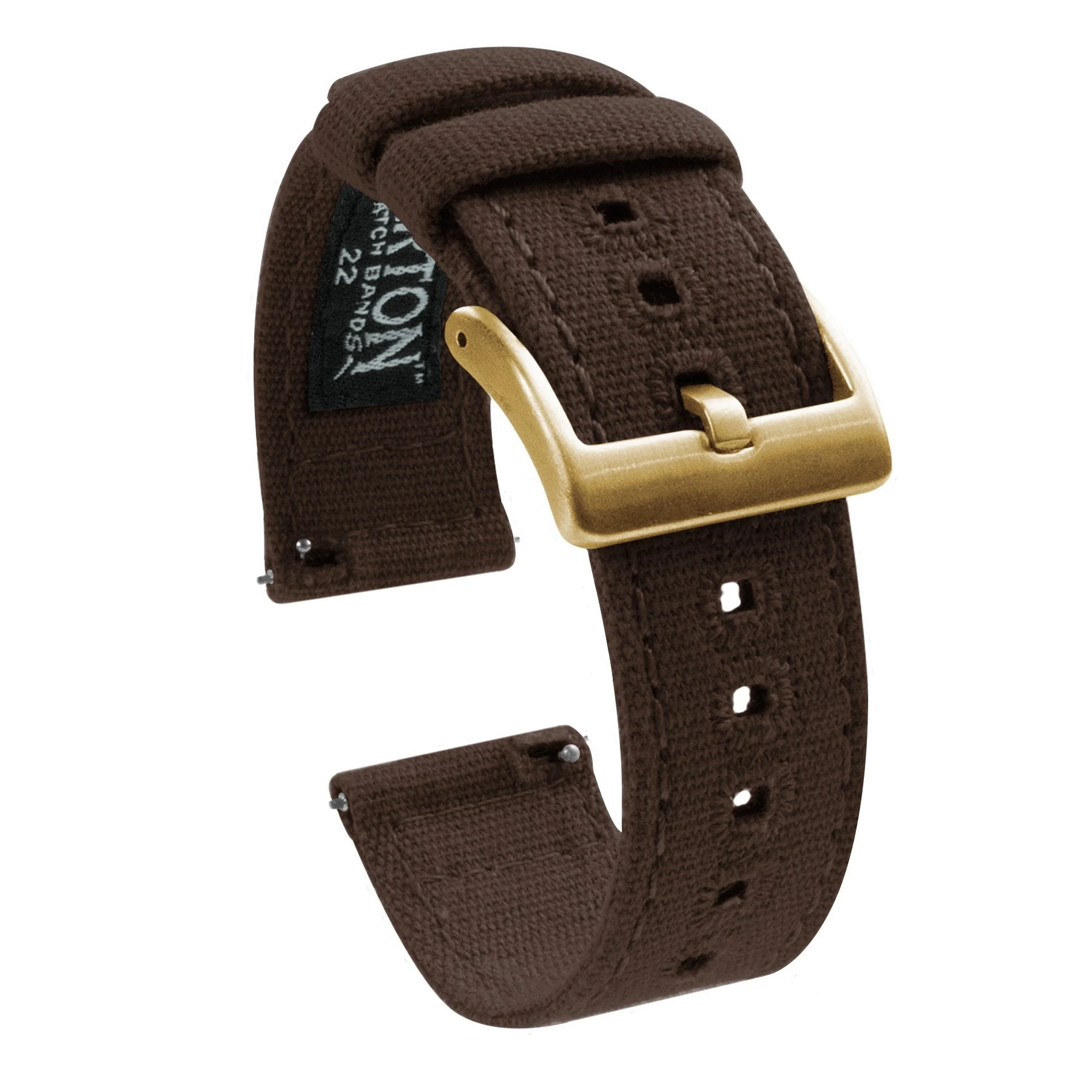 Our Canvas Quick Release watch bands are meticulously crafted from highly durable canvas and embroidered for style and strength. This chocolate brown watch strap adds character to any timepiece and can be swapped in and out without any tools! Pair this brown canvas band with our Silicone or Leather Quick Release to take full advantage of the opportunity to ‘Switch it Up.’