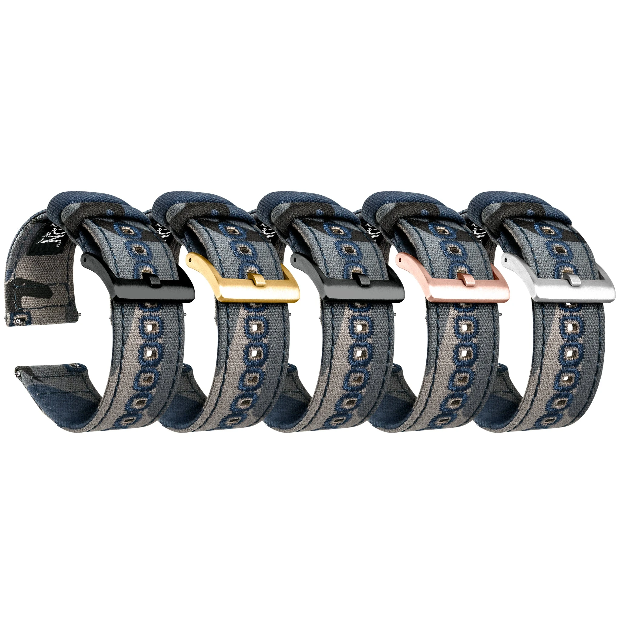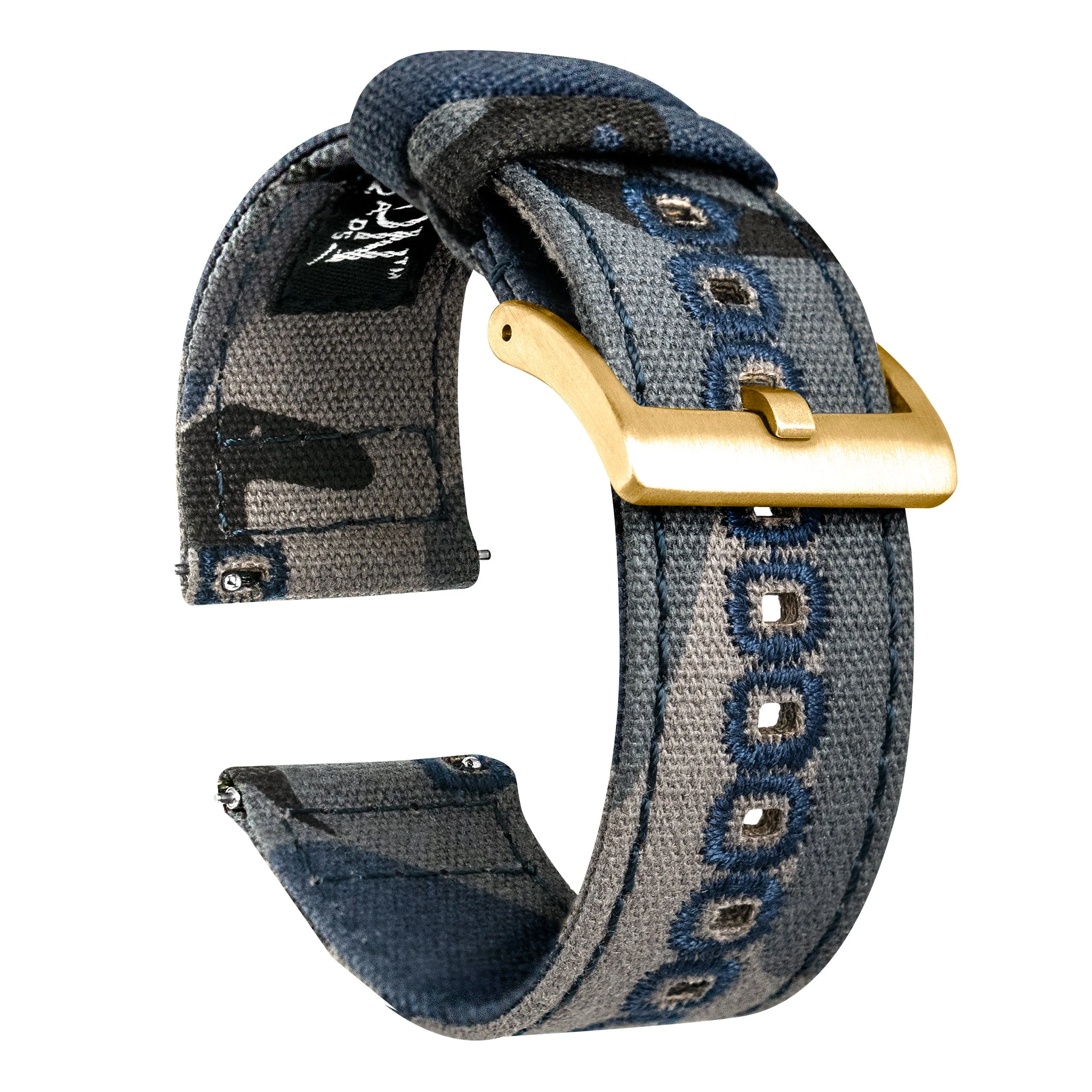Our Canvas Quick Release watch bands are meticulously crafted from highly durable canvas and embroidered for style and strength. This camouflage-print canvas watchband adds character to any timepiece and can be swapped in and out without any tools! Pair this camouflage watch strap with our Silicone or Leather Quick Release to take full advantage of the opportunity to ‘Switch it Up.’