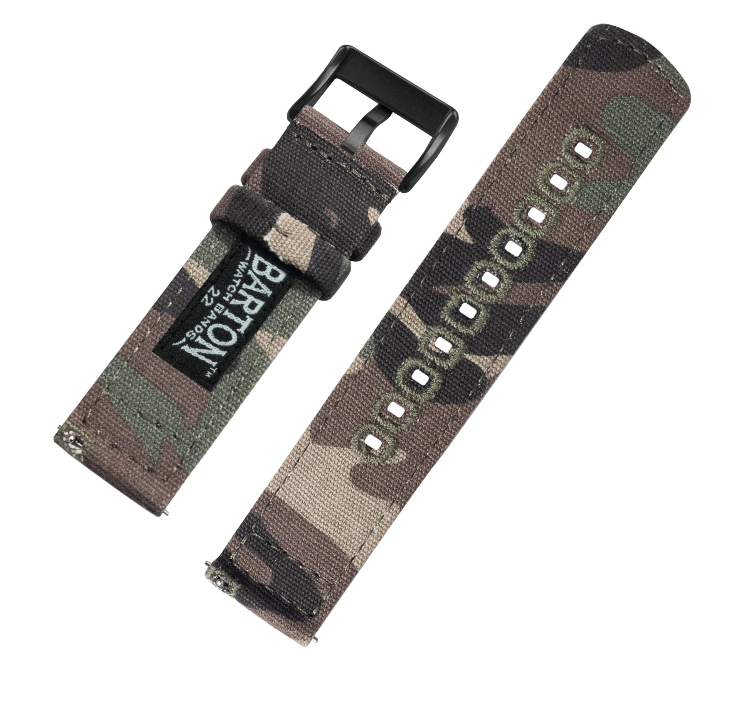 These quick-release watch bands are meticulously crafted from highly durable canvas and embroidered for style and strength. They are a perfect fit for the 40mm and 44mm Samsung Galaxy Watch Active 2. Equipped with quick-release spring bars, they can be swapped in and out in seconds and without any tools! Pair with a silicone or leather Quick Release straps to take full advantage of the opportunity to ‘Switch it Up’.