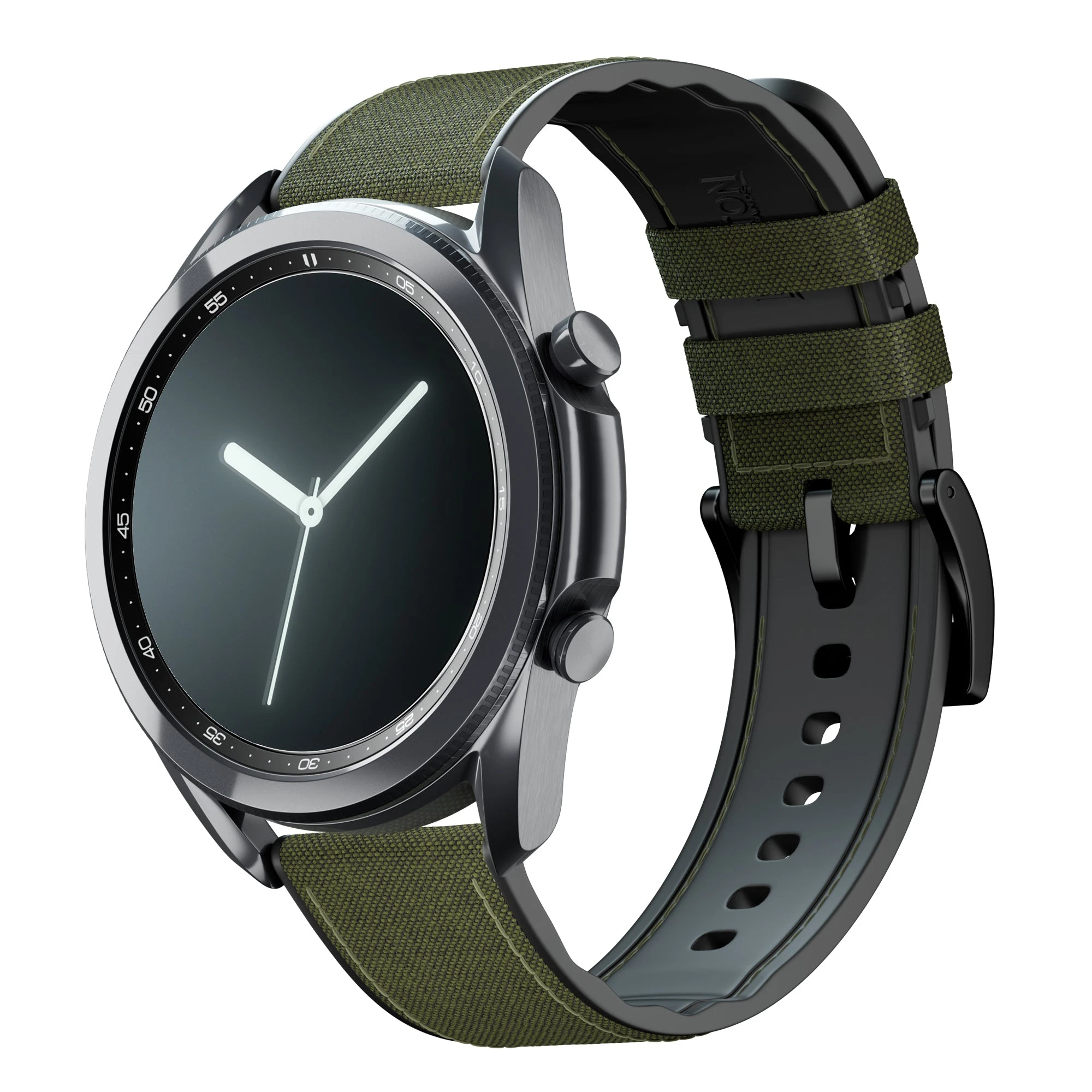 Our Cordrua Fabric and Silicone Hybrid Quick Release watch bands are a perfect fit for the 45mm or 41mm Samsung Galaxy Watch3. These Cordrua Fabric and Silicone Hybrid Quick Release watch straps feature a flexible, high tensile silicone base and 316L stainless steel hardware, silicone-lined eyelets, premium cordura fabric, and a locking keeper loop. This band is ready for action — Whether you’re headed to a backyard BBQ or hike through Big Bend, we’ve got you covered… Swap out in just a few seconds and without tools!