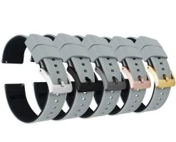 Our Elite Silicone Quick Release watch bands feature a premium textured top, a 316L stainless steel buckle, and a 2mm taper from watch head to buckle. Each Elite Silicone band also comes standard with two included lengths to assure they will be a perfect fit for almost anyone. Swap out in just a few seconds and without tools! Pair this black rubber watch band with our Leather or Canvas quick release bands to take full advantage of the opportunity to ‘Switch it Up’ on the go.